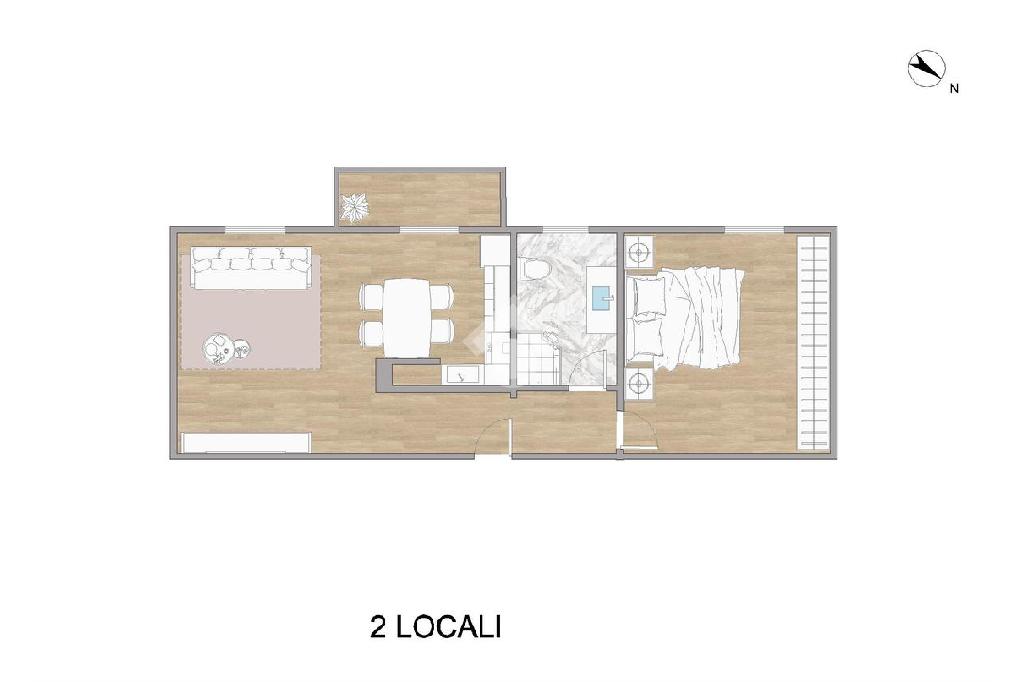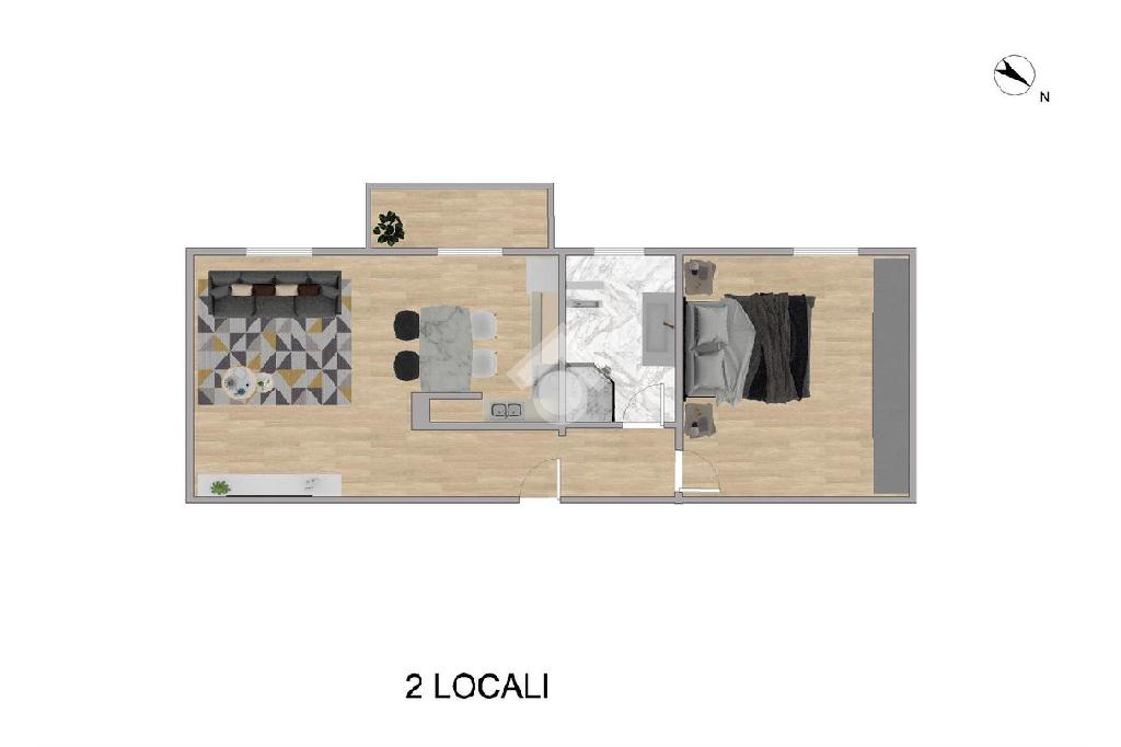 L'alloggio, posto al secondo ed ultimo piano, è accogliente e funzionale, ideale per chi cerca una soluzione abitativa pratica e ben organizzata, e già disponibile. Comprende una comoda zona giorno con la cucina integrata, e nascosta rispetto all'ingresso, una spaziosa camera da letto e un bagno con finestra e doccia. Dalla zona giorno è possibile accedere al balcone.