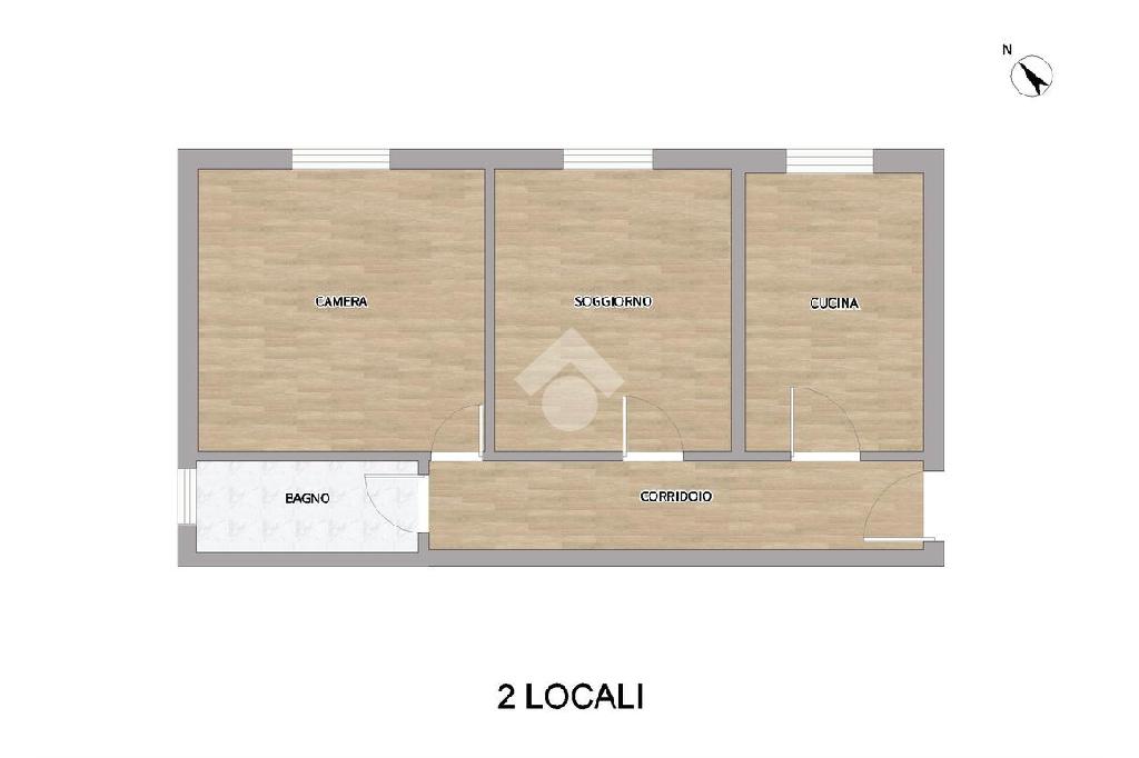 L'alloggio offre spazi ben distribuiti e funzionali. Entrando, un lungo corridoio conduce ai vari ambienti: la cucina abitabile sulla destra, in grado di ospitare comodamente un tavolo, il soggiorno, la grande camera e il bagno dotato sia di vasca che di doccia.