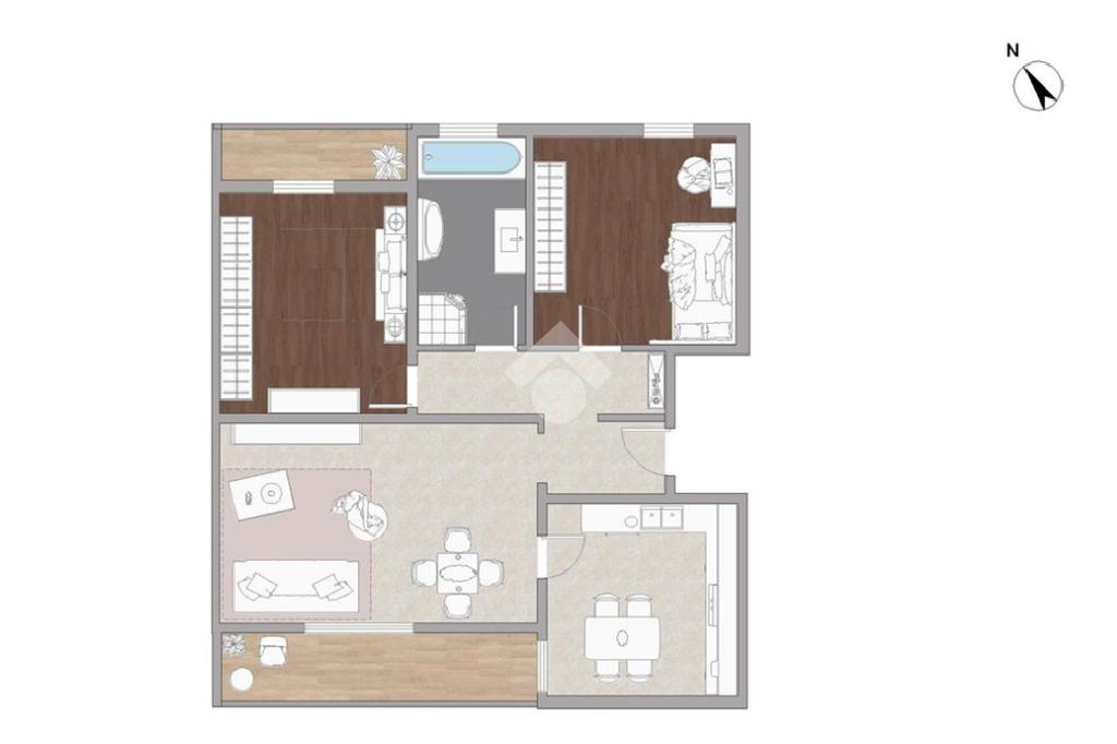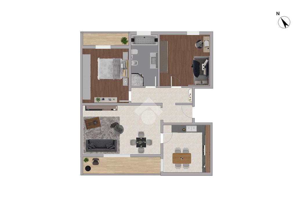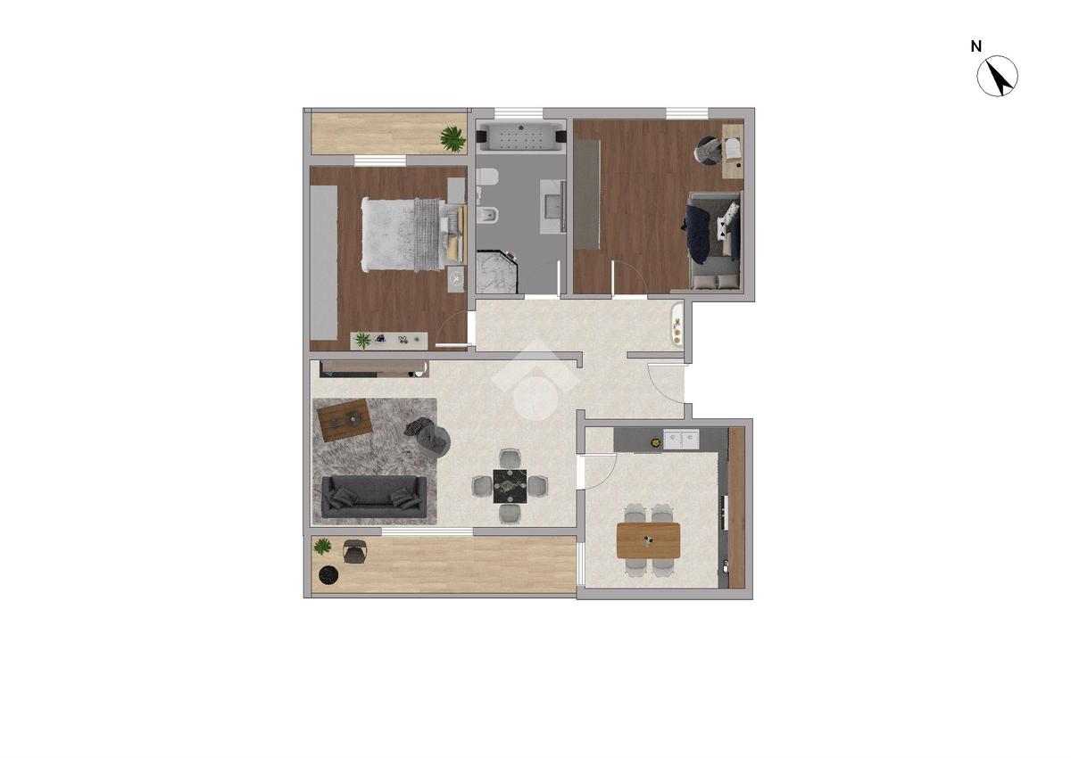Zona giorno: comprende un comodo soggiorno, ideale per accogliere sia la zona relax con divani che la zona pranzo, oltre ad una cucina abitabile. Entrambi gli ambienti hanno accesso a un pratico balcone.