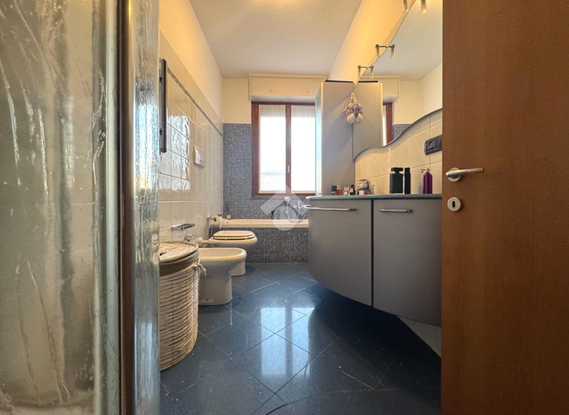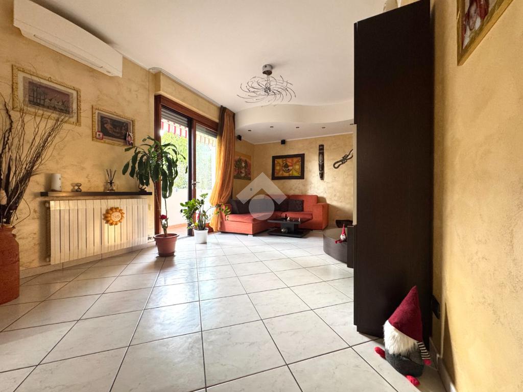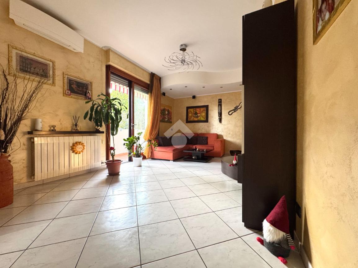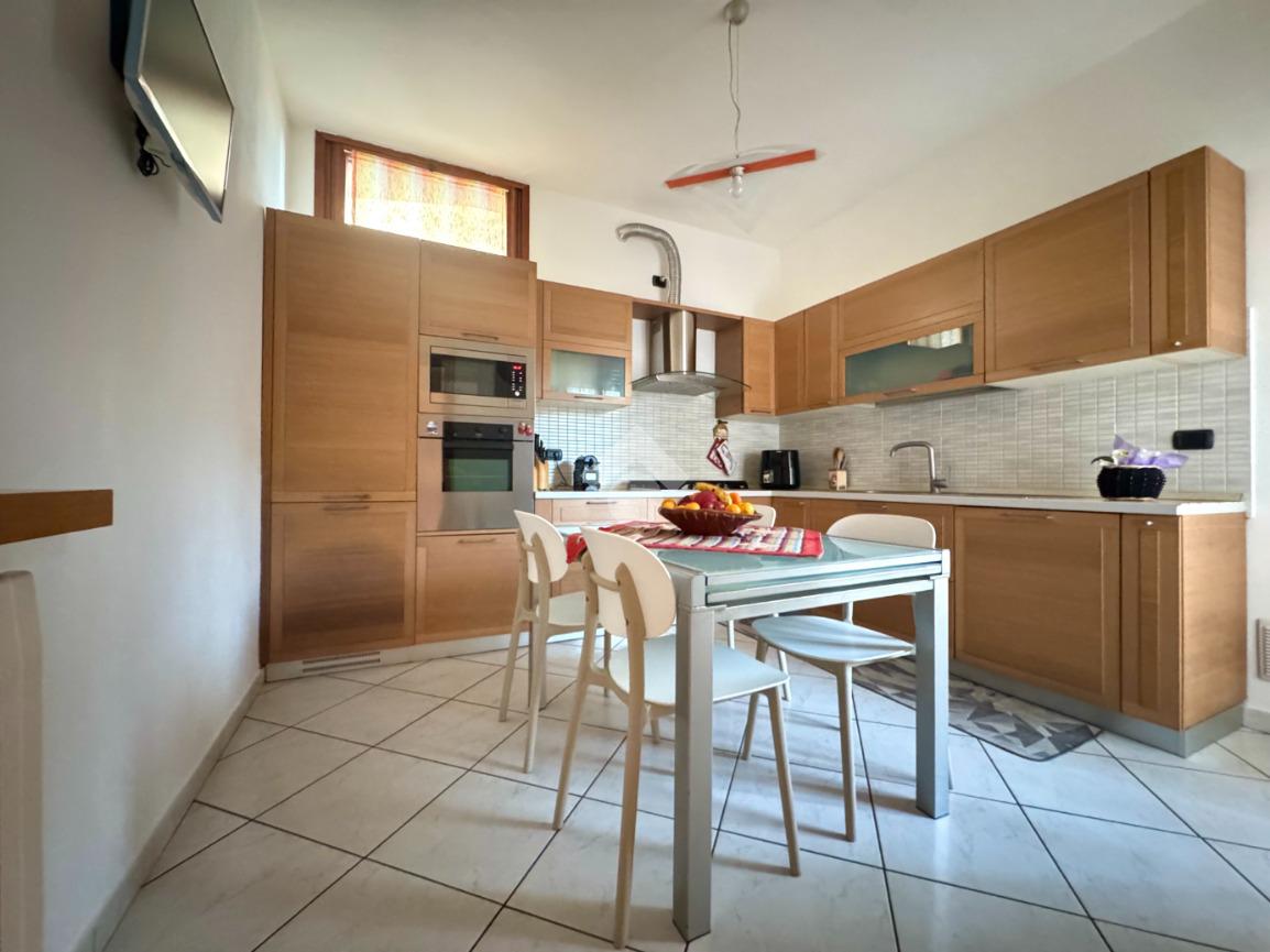 Completamente ristrutturato nel 2005, è dotato di: aria condizionata con pompa di calore nel soggiorno e nella camera matrimoniale, sistema di antifurto, tende da sole e zanzariere. Completano la proprietà la cantina posta al piano interrato e due boxes.