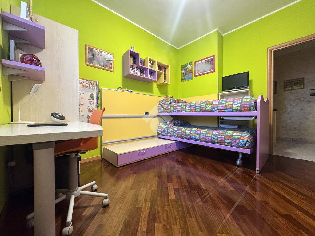 Zona notte: comprende due camere da letto, rifinite in parquet, con la matrimoniale che offre accesso al balcone, e un bagno con vasca.