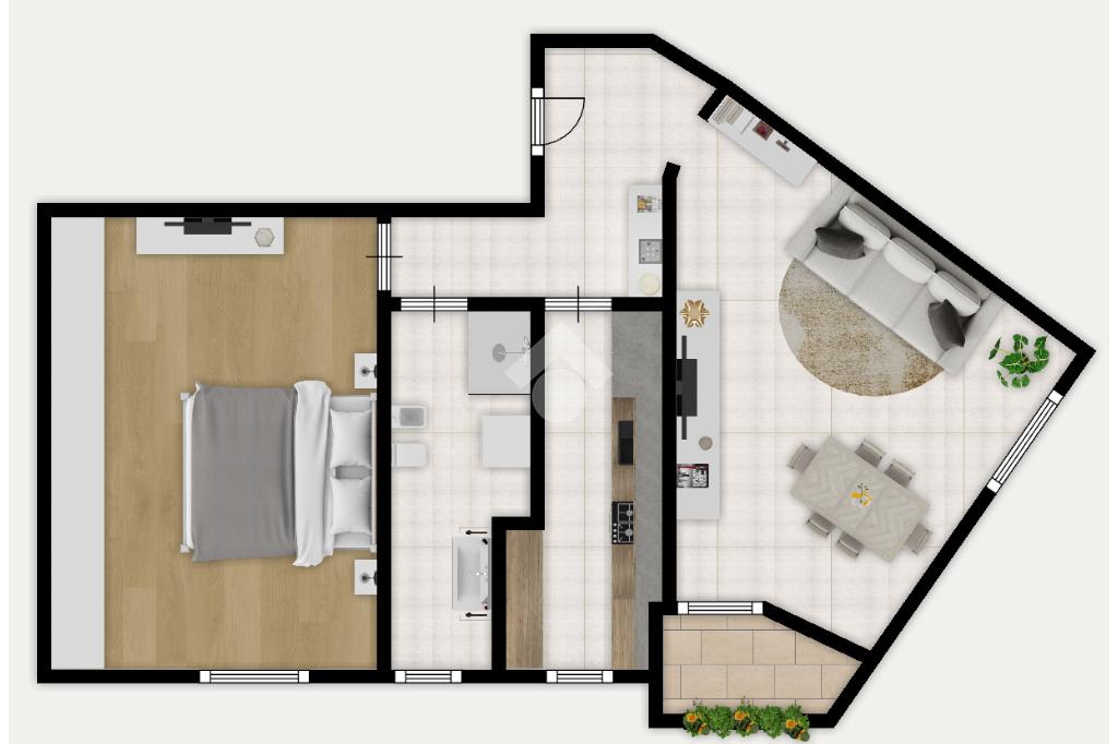 L’ingresso si apre su un disimpegno che conduce al luminoso soggiorno con balcone e alla cucina abitabile, un ambiente accogliente e funzionale. Dal disimpegno si accede alla camera da letto matrimoniale spaziosa e al bagno finestrato, dotato di piatto doccia.