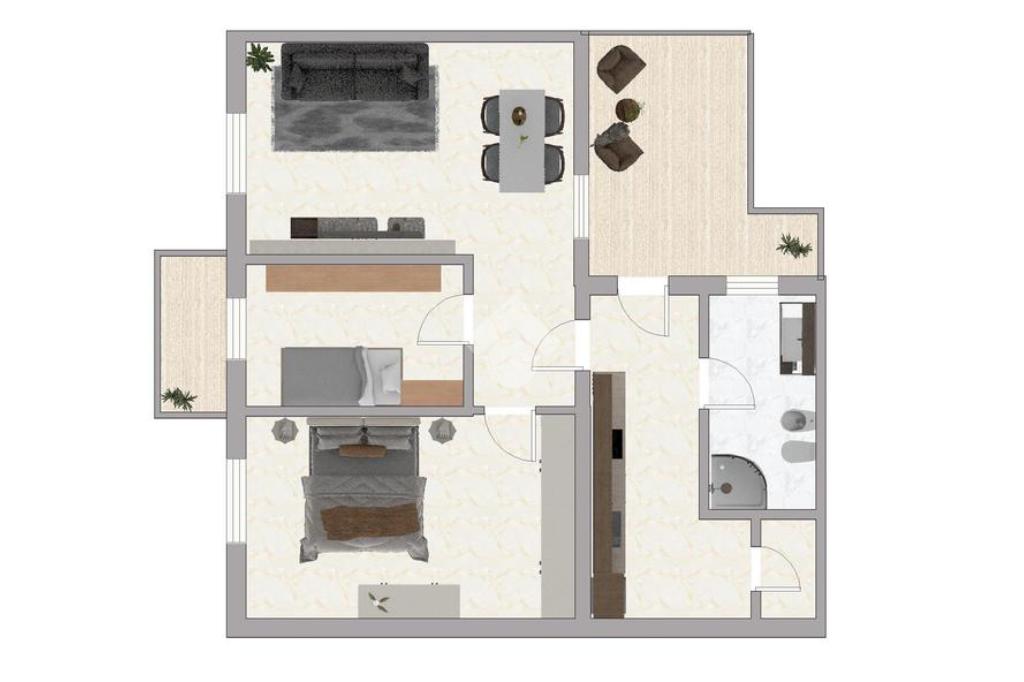 All'ingresso si accede alla zona giorno, ideale per momenti di relax e socializzazione. La cucina è separata, permettendo una gestione ottimale delle attività quotidiane. Le due camere da letto garantiscono comfort e privacy, mentre il bagno, dotato di vasca e finestra, completa l'area notte. Un balcone offre uno spazio esterno per godere di momenti all'aria aperta.