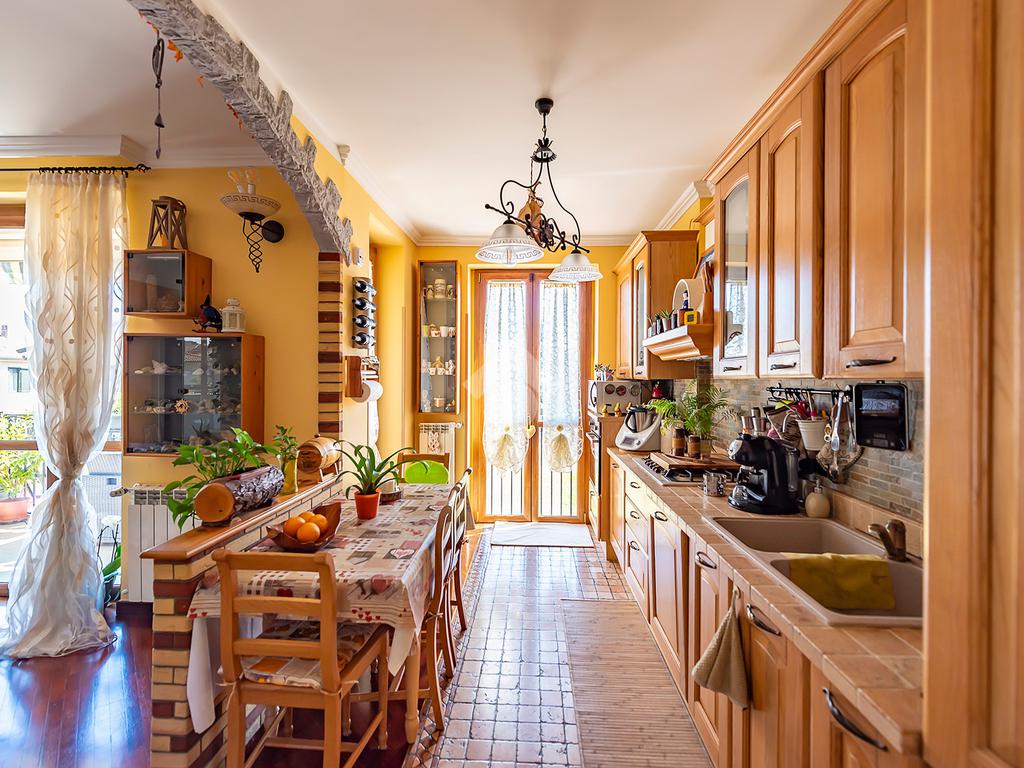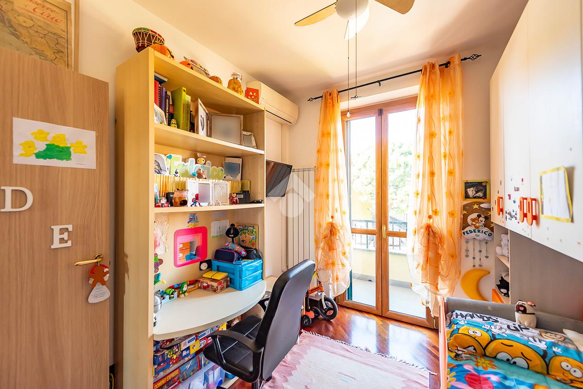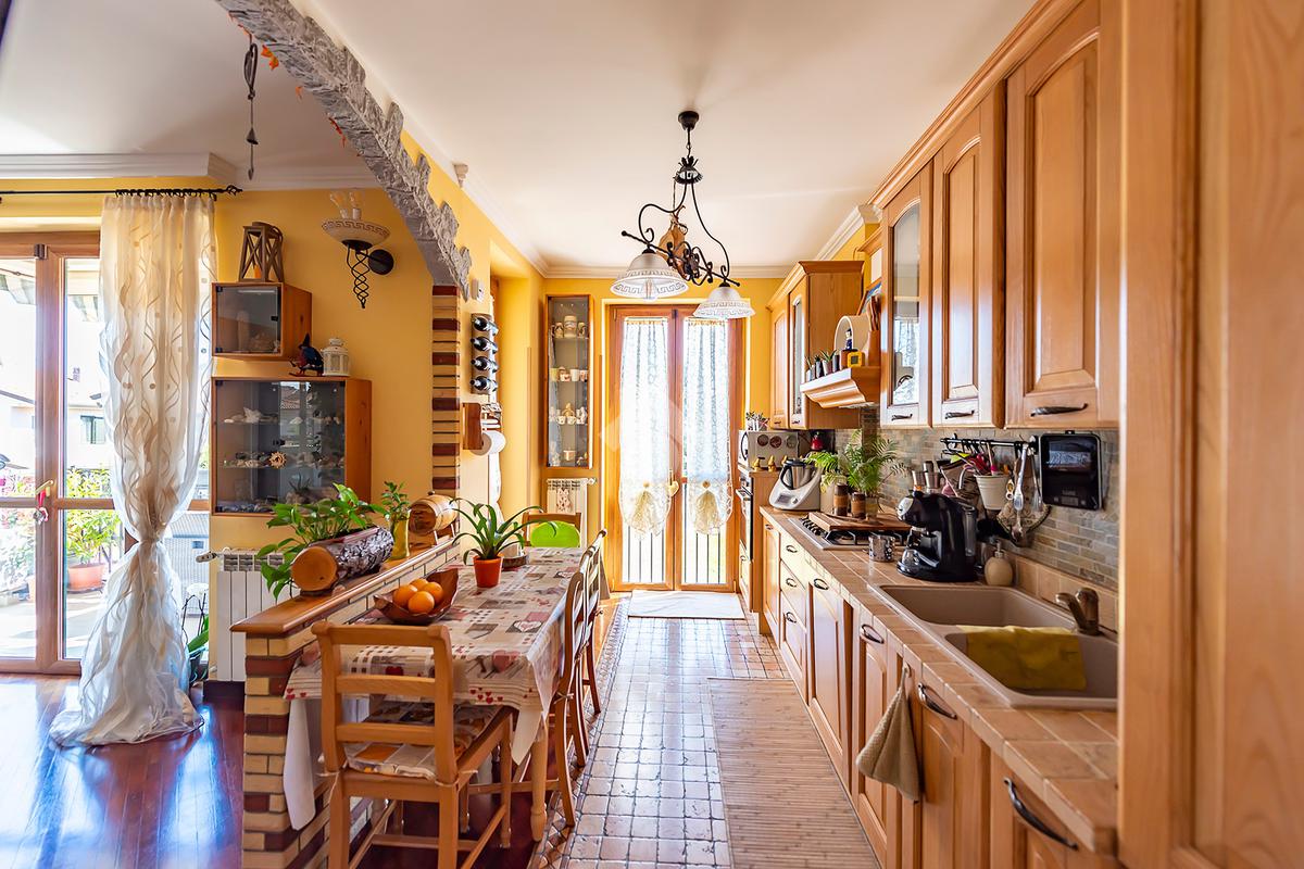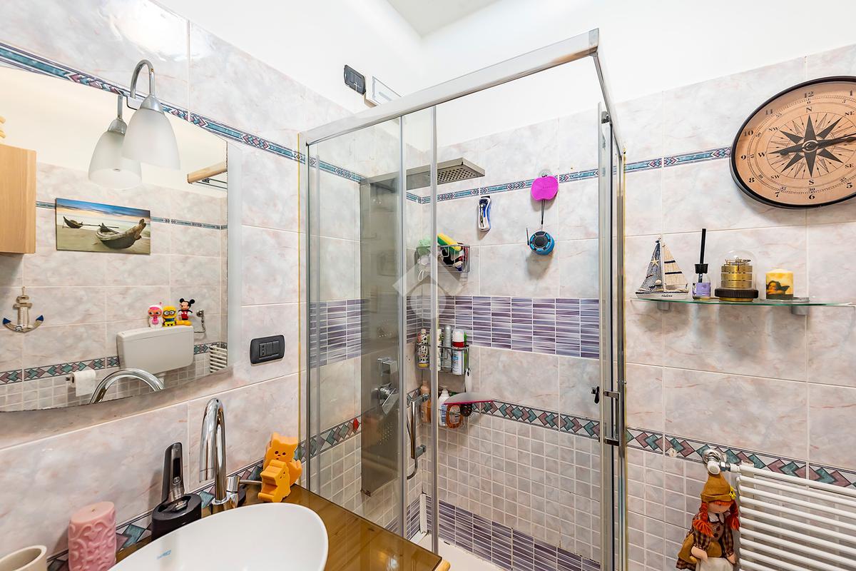 La zona giorno si apre su un soggiorno accogliente e ben proporzionato, collegato alla cucina abitabile tramite un caratteristico arco che conferisce continuità visiva e armonia agli ambienti. La cucina, particolarmente funzionale, è ulteriormente impreziosita dalla presenza di un pratico ripostiglio/dispensa, ideale per ottimizzare gli spazi e garantire ordine. L’abitazione dispone inoltre di due balconi: il primo a servizio della zona giorno, il secondo dedicato alla zona notte e accessibile da due delle tre camere da letto. La zona notte è completata da due bagni, uno finestrato dotato di vasca e un secondo attrezzato con doccia.