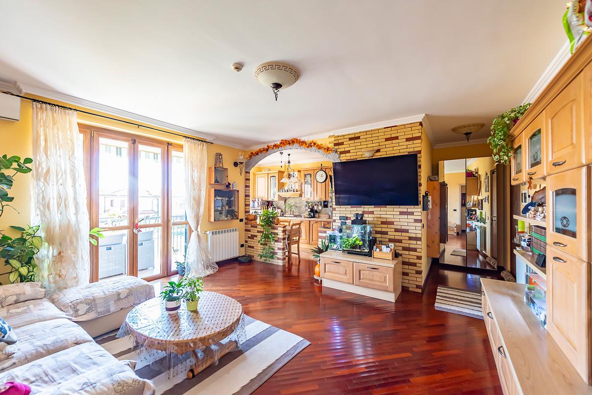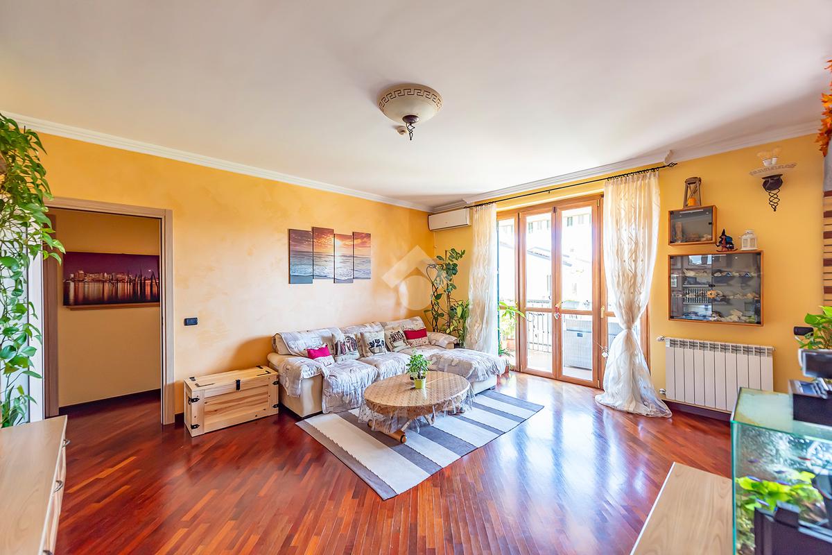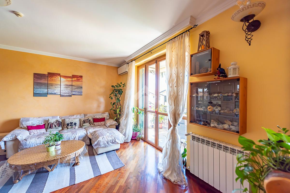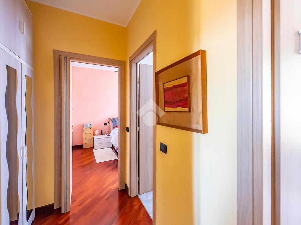 La zona giorno si apre su un soggiorno accogliente e ben proporzionato, collegato alla cucina abitabile tramite un caratteristico arco che conferisce continuità visiva e armonia agli ambienti. La cucina, particolarmente funzionale, è ulteriormente impreziosita dalla presenza di un pratico ripostiglio/dispensa, ideale per ottimizzare gli spazi e garantire ordine. L’abitazione dispone inoltre di due balconi: il primo a servizio della zona giorno, il secondo dedicato alla zona notte e accessibile da due delle tre camere da letto. La zona notte è completata da due bagni, uno finestrato dotato di vasca e un secondo attrezzato con doccia.