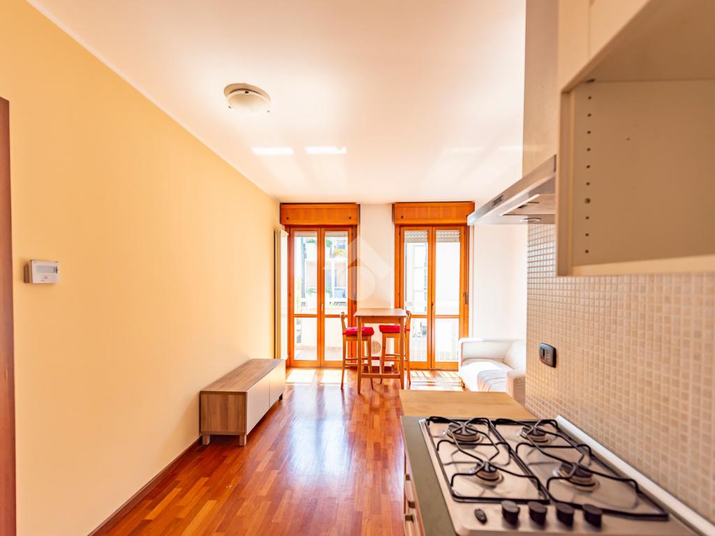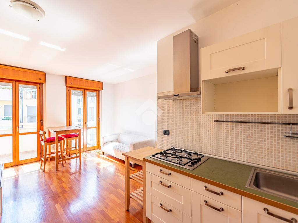 Posto al secondo piano, l’appartamento è caratterizzato da ambienti luminosi e ben distribuiti. L’ingresso accompagna alla zona giorno con cucina a vista mentre un comodo disimpegno, ideale anche come angolo studio o ripostiglio, conduce alla camera matrimoniale e al bagno finestrato con vasca. Il balcone di ampie dimensioni, accessibile sia dal soggiorno che dalla camera, offre uno sfogo esterno vivibile soprattutto durante la bella stagione.