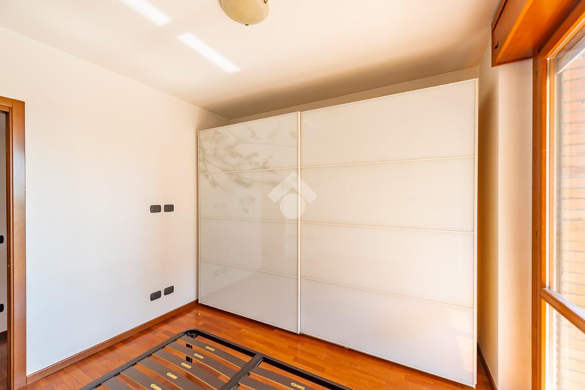 Completano la proprietà un box auto e una cantina al piano interrato. Le finiture di qualità, come il parquet e i serramenti in legno con doppio vetro, insieme alle dotazioni di sicurezza quali portoncino blindato e videocitofono, garantiscono un elevato standard abitativo.