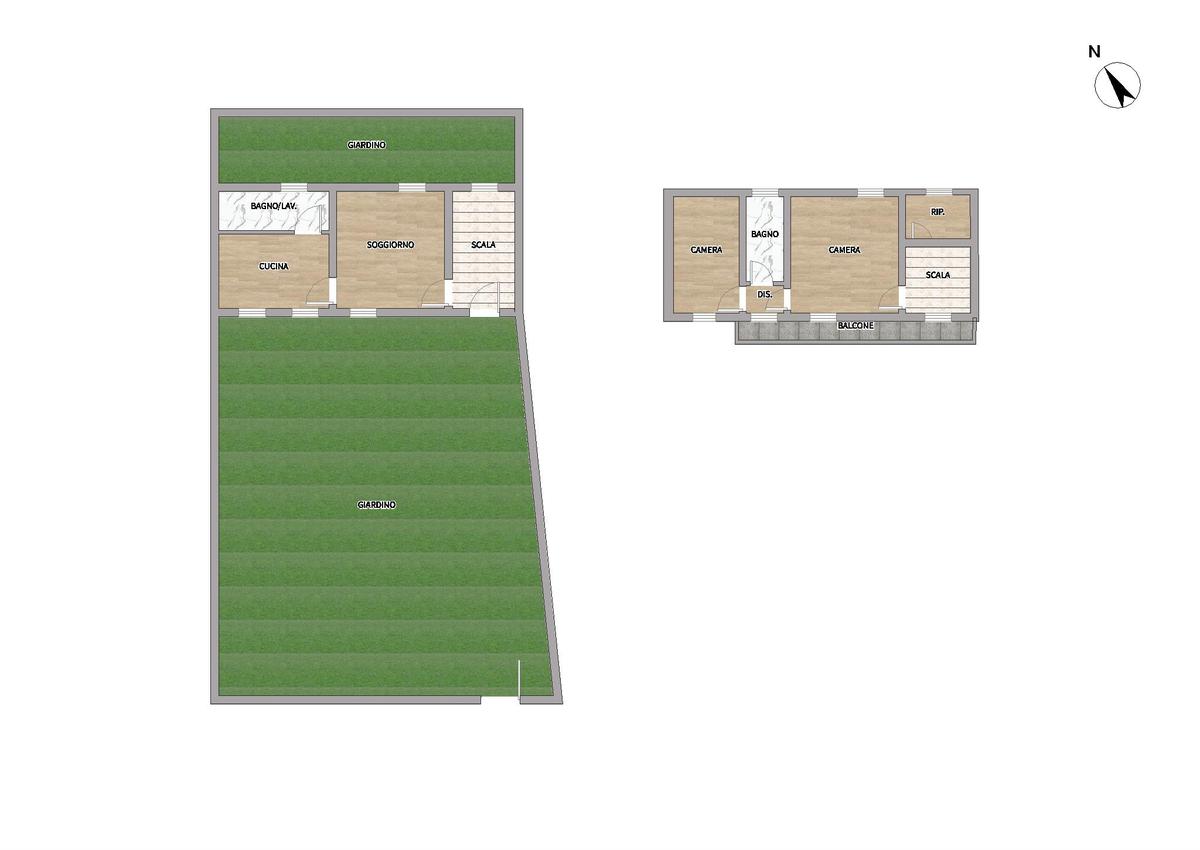 La disposizione interna è progettata per garantire il massimo comfort. La zona giorno, ampia e luminosa, comprende un soggiorno che beneficia di ampie finestre che lasciano entrare abbondante luce naturale, e una cucina abitabile, ideale per chi ama cucinare e socializzare. Il bagno, completo di una finestra e di una grande doccia, arricchito da eleganti rivestimenti, completa perfettamente il piano terra. Al piano superiore troviamo la camera matrimoniale, una cameretta spaziosa e un ulteriore bagno. A completare il tutto, c'è un bel balcone.