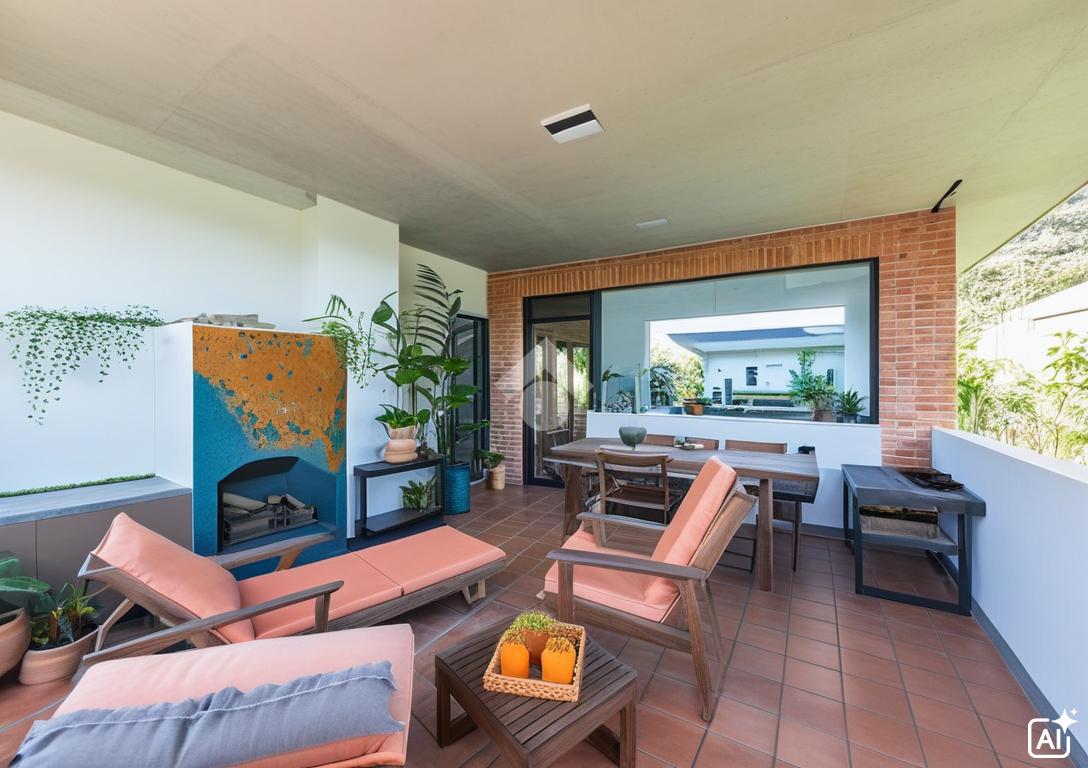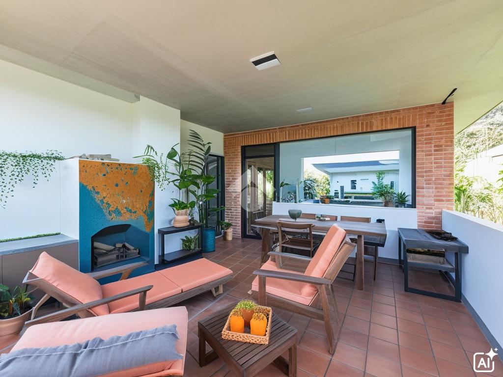 Le ampie finestre permettono alla luce naturale di inondare gli spazi, creando un legame diretto con la natura esterna e offrendo una vista piacevole sul giardino privato.
