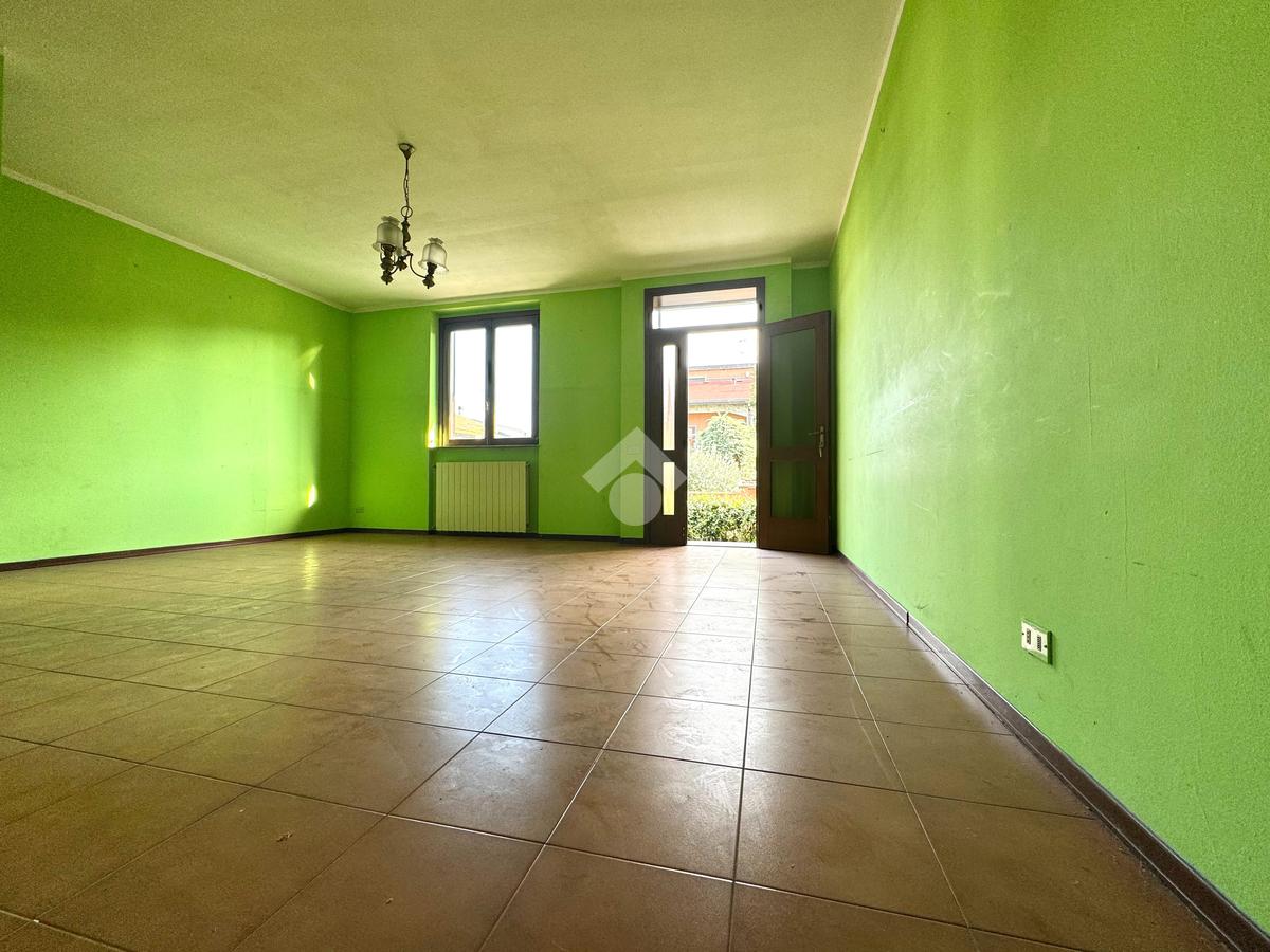 Questa porzione di villa bifamiliare si trova in una tranquilla zona residenziale di Rescalda, circondata da edifici bassi che assicurano la giusta privacy.