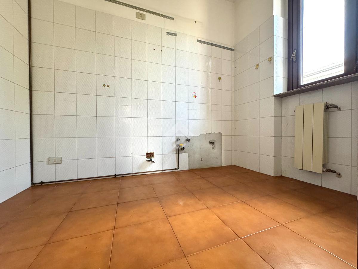 Il piano rialzato ospita il soggiorno, la cucina, due camere rifinite in parquet, un bagno con finestra e vasca, e una comoda lavanderia.