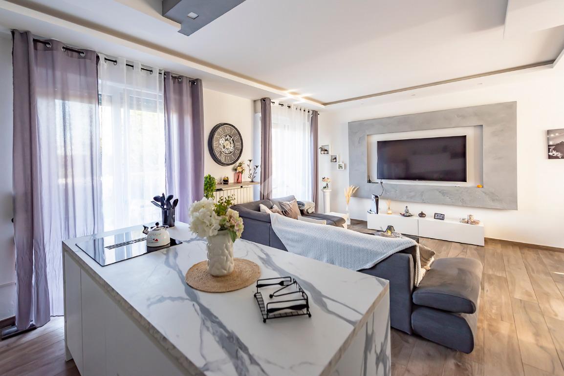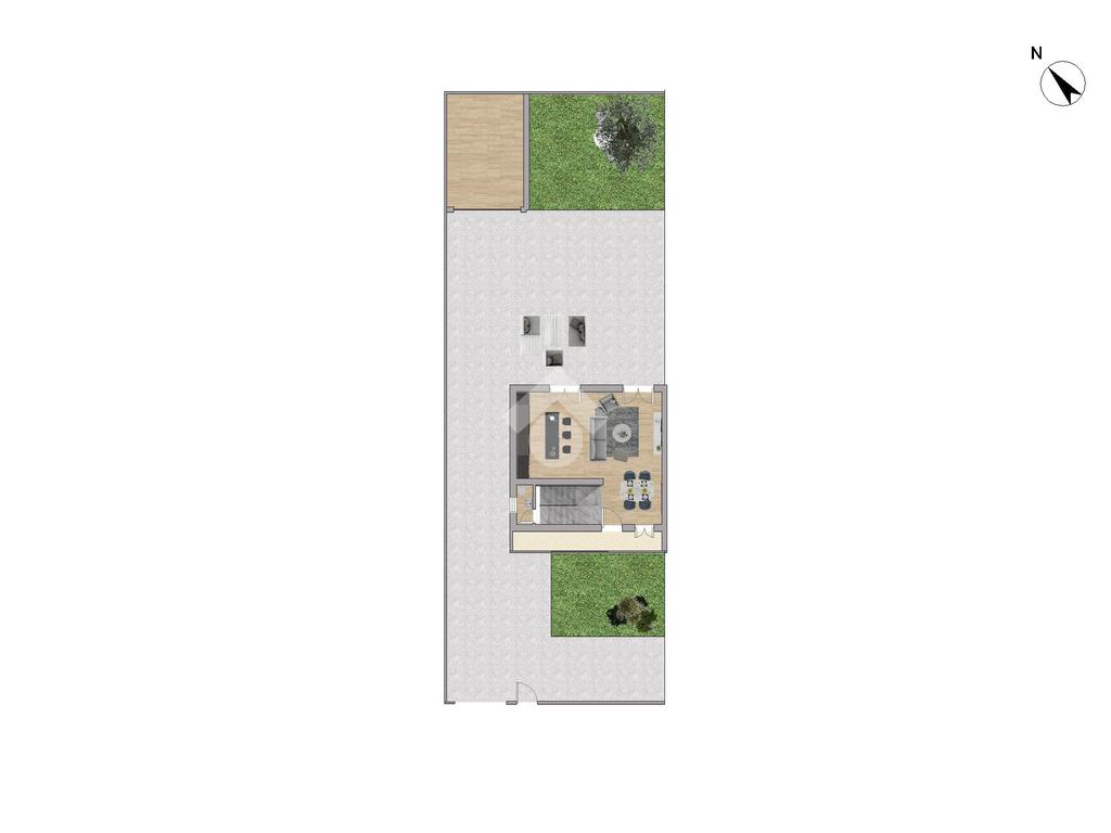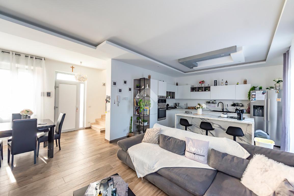 L’abitazione si sviluppa su due livelli abitativi oltre a un piano seminterrato. Il piano rialzato accoglie una luminosa e moderna zona giorno open space, dove cucina abitabile e soggiorno si integrano armoniosamente in un unico ambiente, con accesso ai balconi che conducono al giardino privato, perfetto per momenti di relax all’aria aperta.