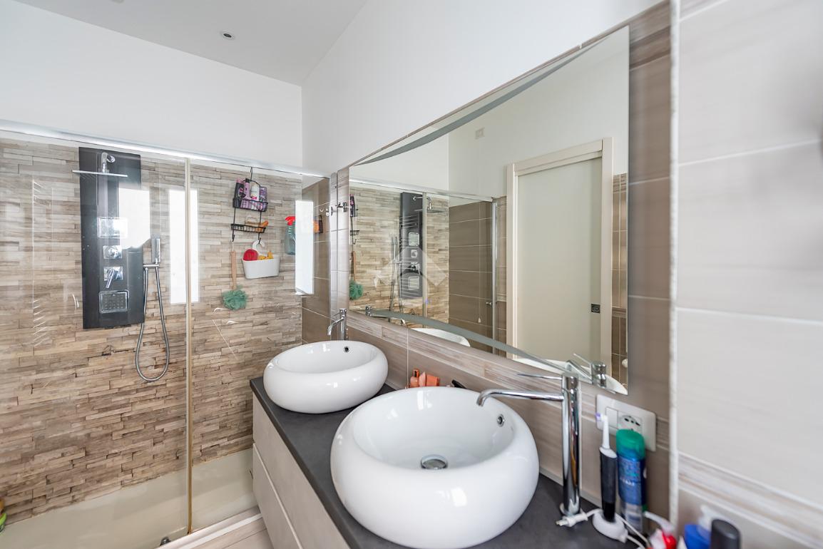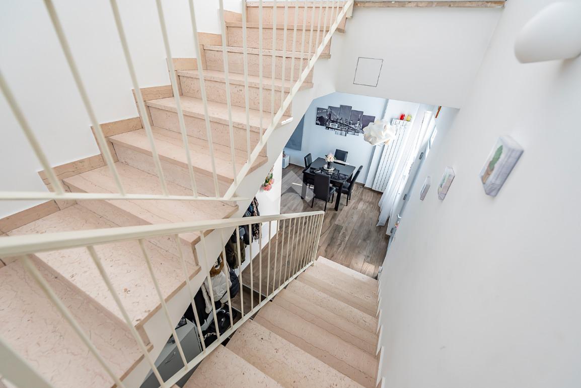 Al piano primo si trovano due ampie camere da letto e un bagno spazioso dotato di una grande doccia. Tra il piano rialzato e il seminterrato è presente un secondo bagno finestrato, che garantisce praticità e comfort per tutta la famiglia.