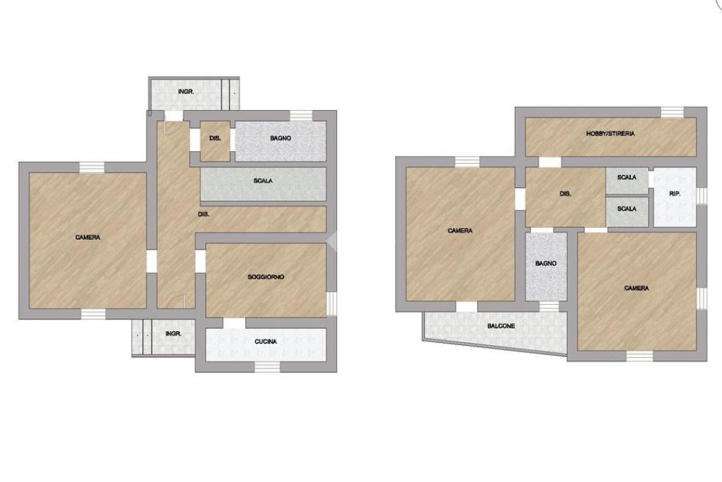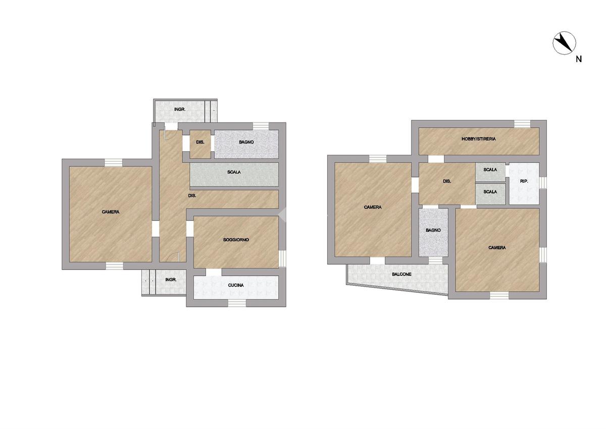 La villa si sviluppa su due livelli armoniosamente collegati. Al piano terra l’ingresso accompagna in un soggiorno luminoso, uno spazio che si presta sia alla convivialità che ai momenti di quiete quotidiana; accanto al soggiorno si trova un cucinotto funzionale. Sullo stesso livello è presente un bagno e una comoda camera, ideale per ospiti, per un familiare che preferisce un piano senza scale o come stanza aggiuntiva per chi lavora da casa. Salendo al piano superiore, ci si trova di fronte a due grandi camere matrimoniali, entrambe caratterizzate da metrature generose. Una delle camere dispone anche dell’accesso diretto a un balcone, che aggiunge luce e aria. A completare il piano vi è un ulteriore locale, estremamente versatile, che può diventare uno studio, una cabina armadio, una stanza hobby o un ambiente di servizio, in base alle esigenze di chi abiterà la casa. Anche qui è presente un bagno, pensato per garantire comodità e funzionalità.