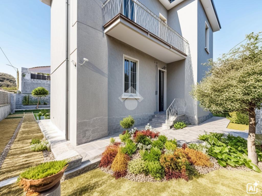 All’esterno, la villa è abbracciata da un giardino privato che circonda l’abitazione. Questo spazio aperto, ricco di potenzialità, si presta a molteplici utilizzi: un’area relax con salottino outdoor, un angolo dedicato al gioco dei bambini, uno spazio per pranzi all’aperto, o semplicemente un giardino fiorito da vivere nelle belle stagioni.